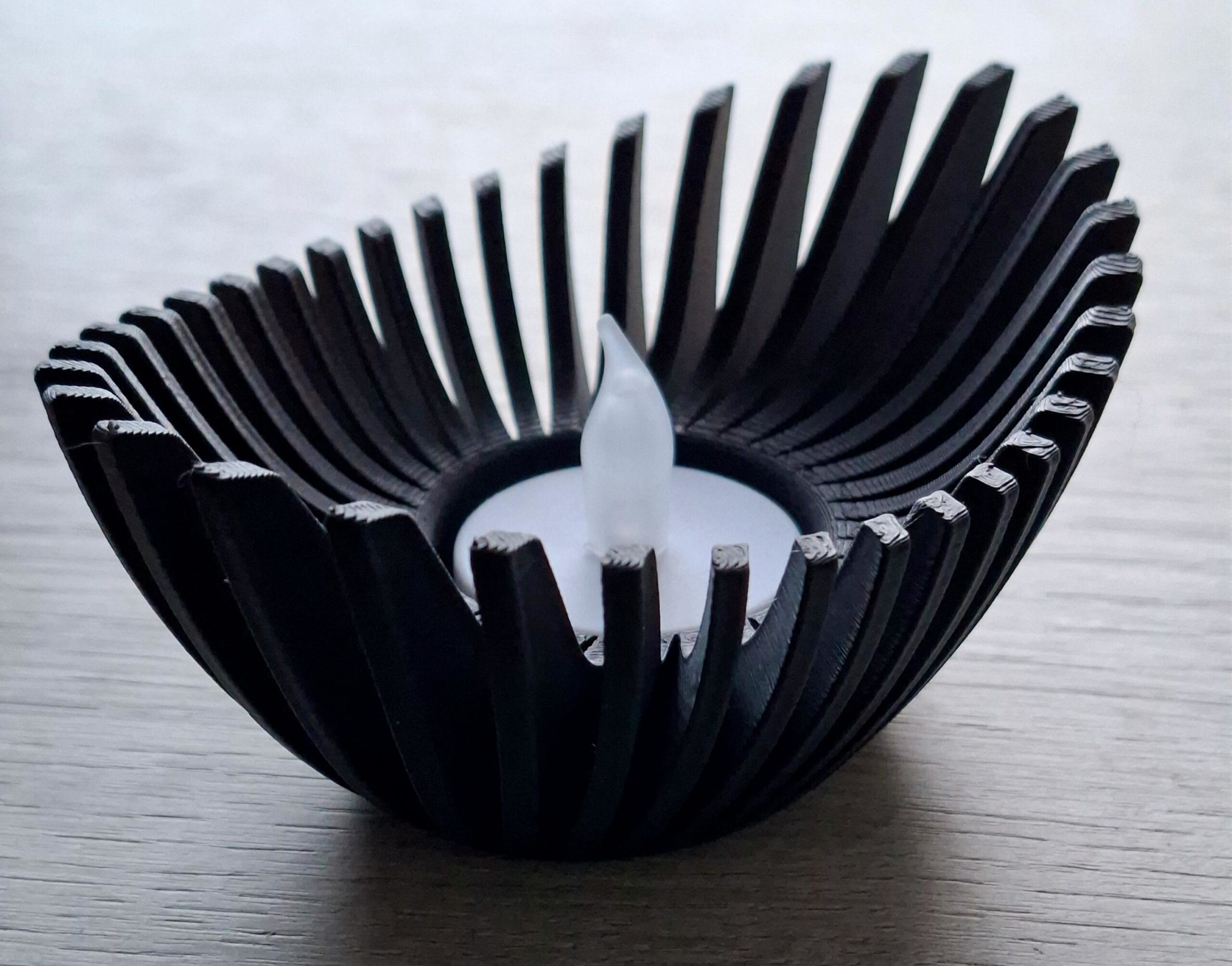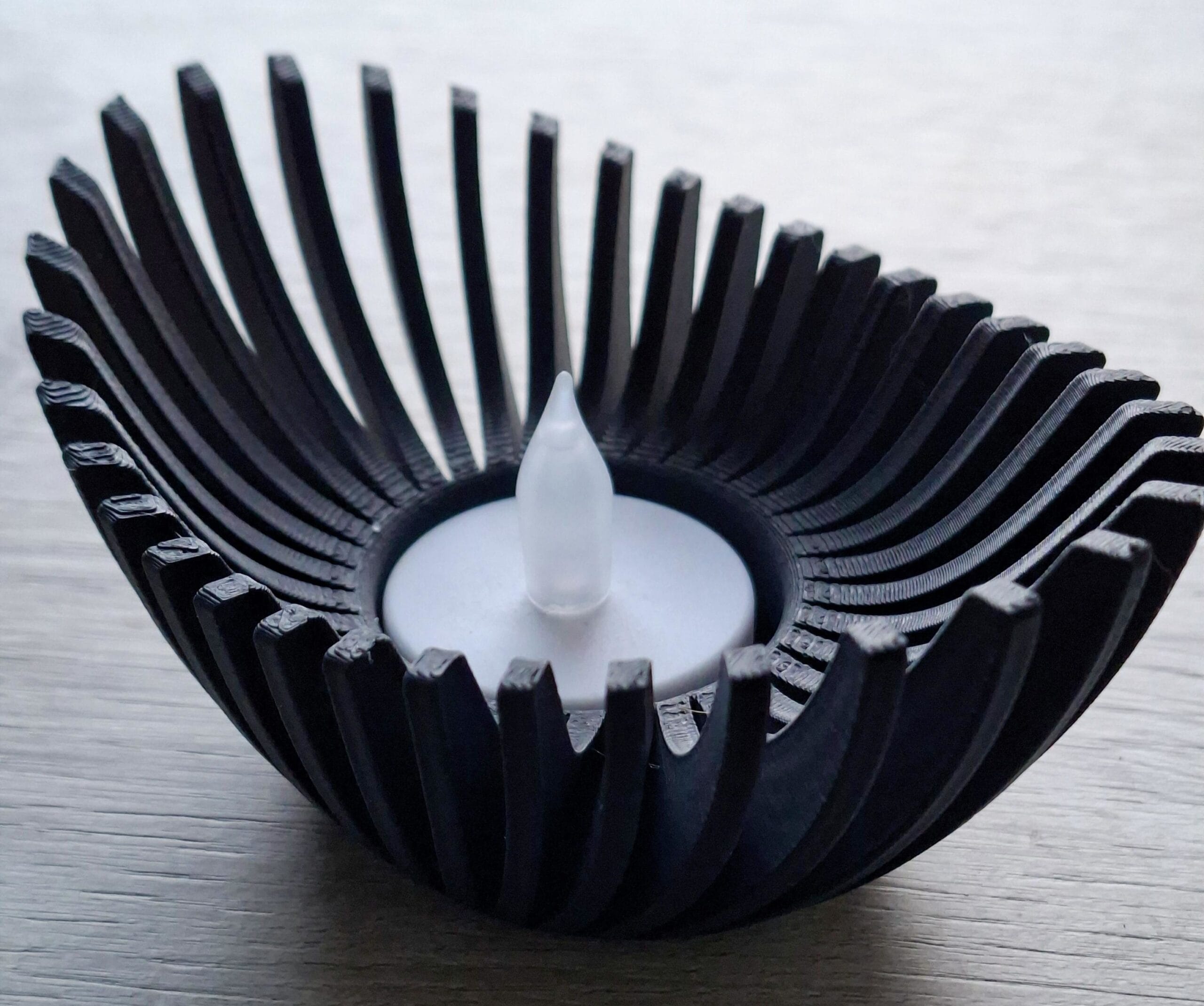 Dit product is een 3D Geprinte kaarshouder met een uniek lamellendesign